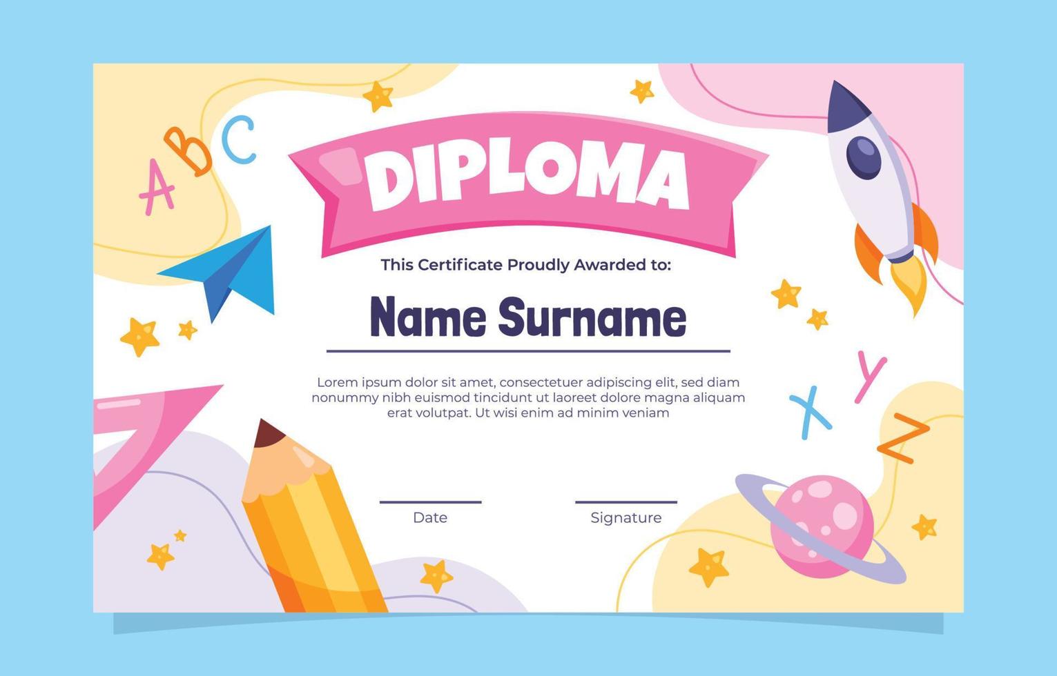Diploma Certificate Template for Children 22352695 Vector Art at Vecteezy