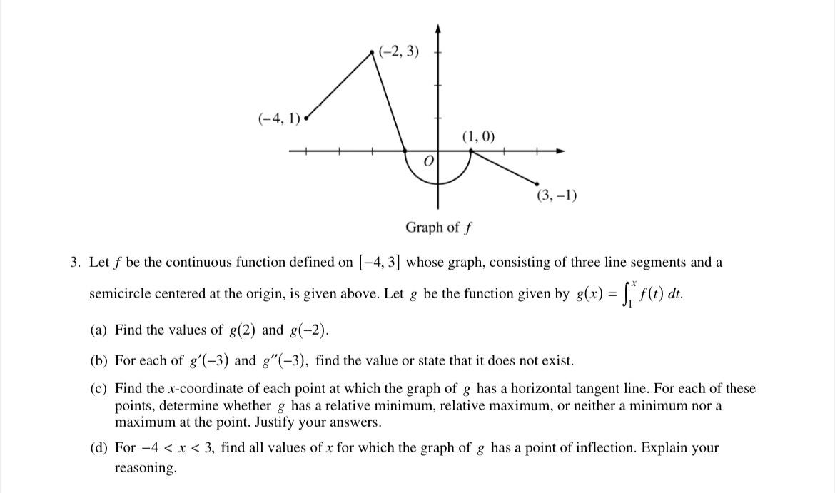 Solved 3 Let f be the continuous function defined on −4 3 Chegg com