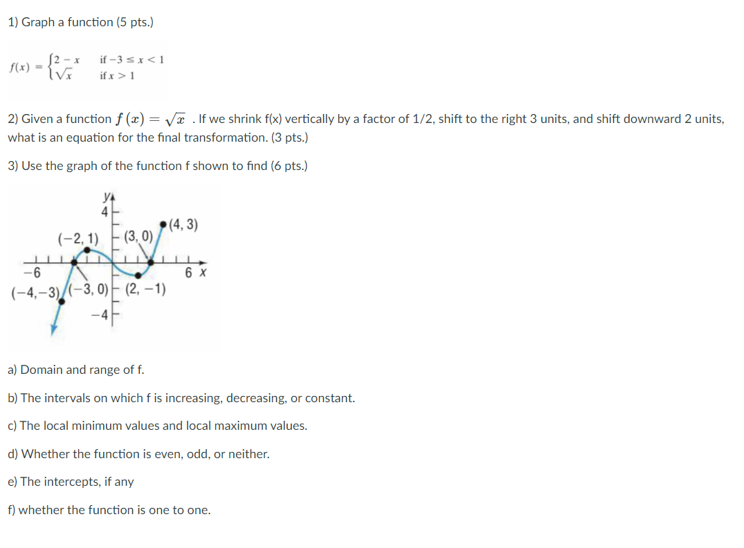 Solved 1) Graph a function (5 pts ) 12 x if 3 SX