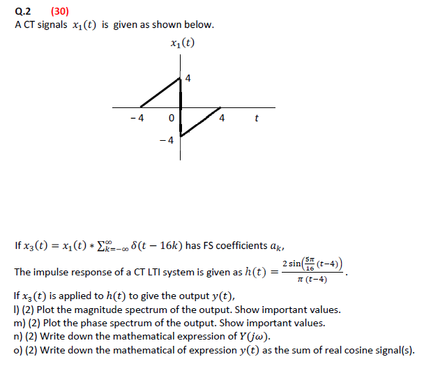 Solved Q 2 (30) A CT signals xi(t) is given as shown below Chegg com