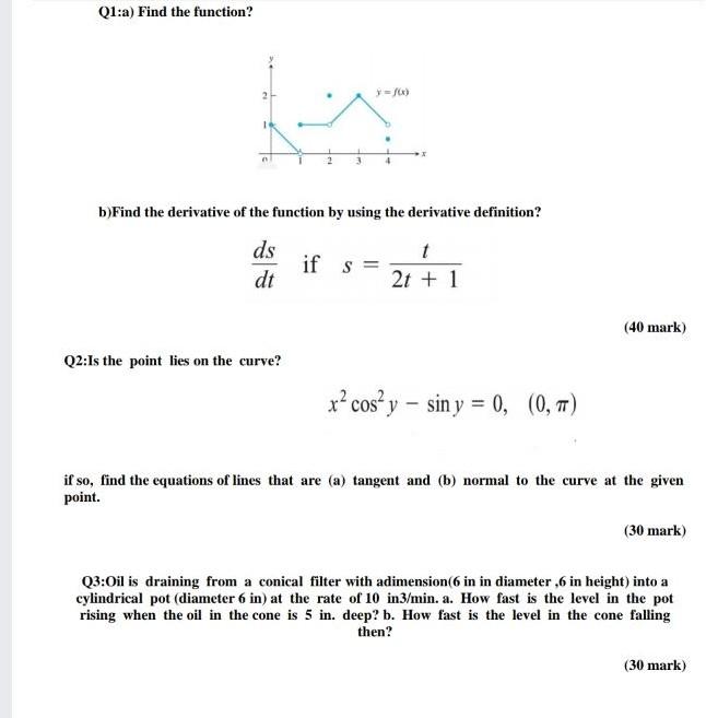 Solved Q1:a) Find the function? 2 b)Find the derivative of Chegg com