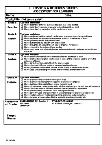 Who is Jesus KS3 Assessment Marking Sheet based on Blooms Teaching