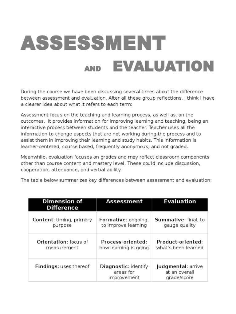 Assessment and Evaluation PDF Educational Assessment Learning