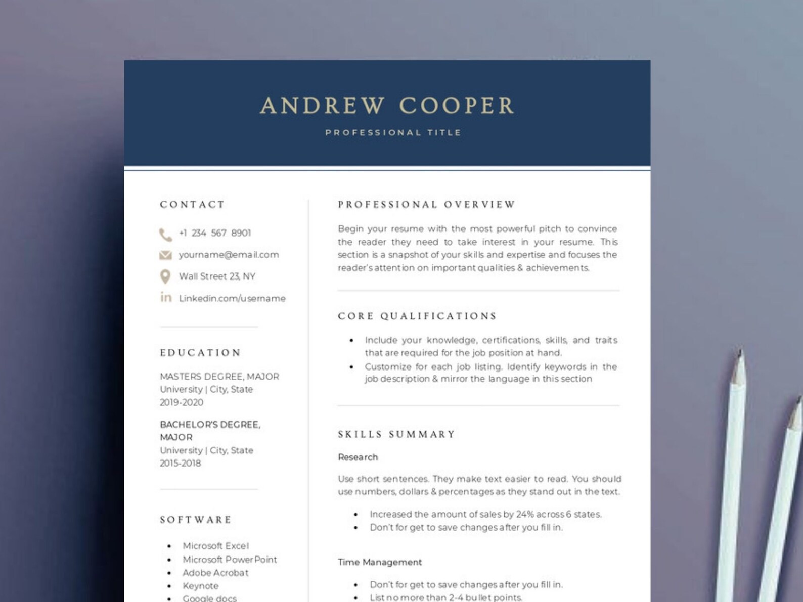 Functional Resume Template ATS Resume Word Skills Based Resume CV