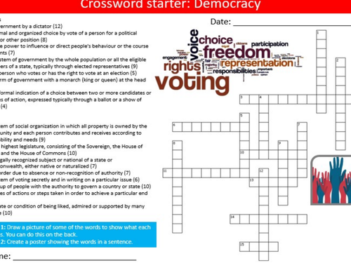 Democracy Crossword Puzzle Worksheet Activity Teaching Resources