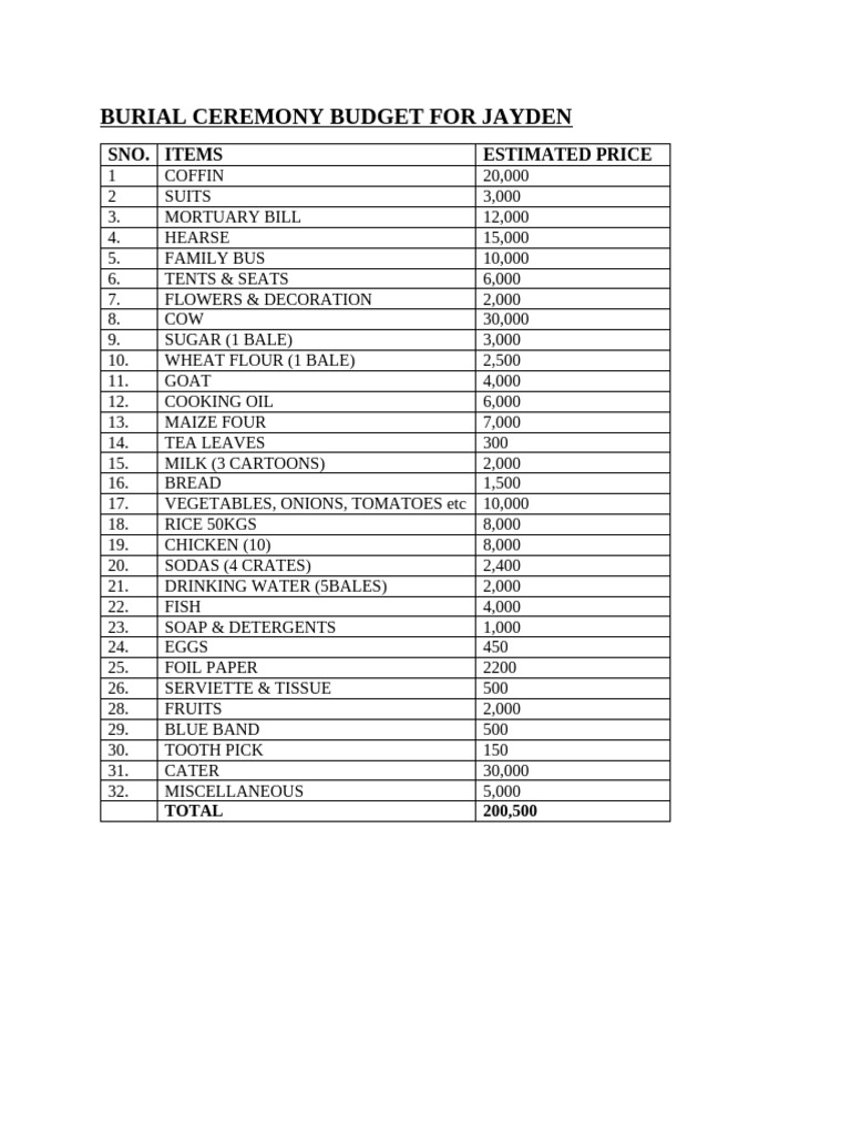 Here are some of the images for Funeral Budget Template that we found in our website database.