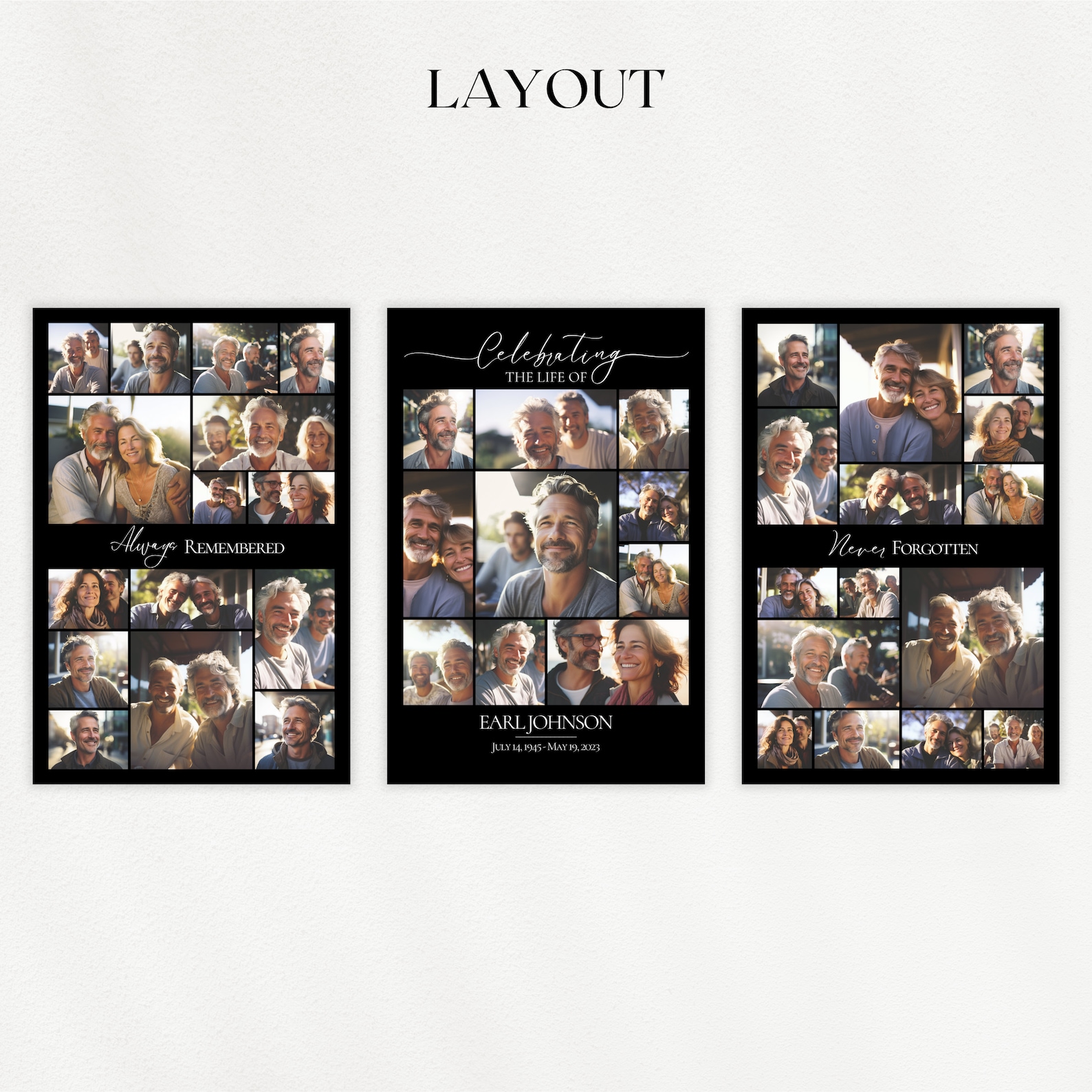 Memory Board Template Funeral Picture Collage Sign Set Templates