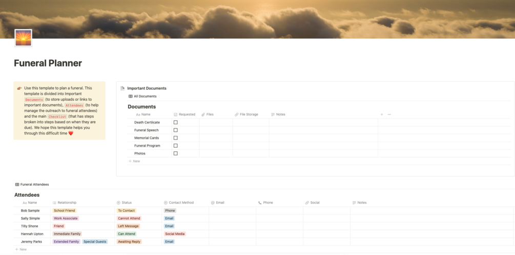 Notion Funeral Planner