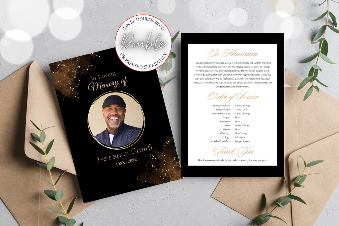 Black Gold Funeral Program Template Editable Printable Etsy Canada