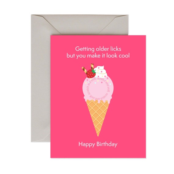 Birthday Card Cute Funny Ice Cream Print Greeting Card Etsy