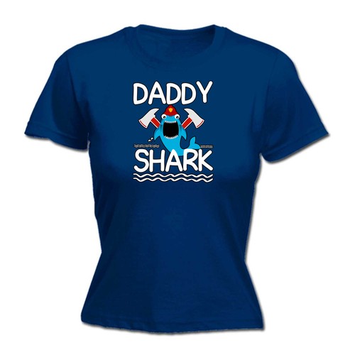Daddy Shark Dad Father Firefighter Funny Womens Ladies Top T Shirt