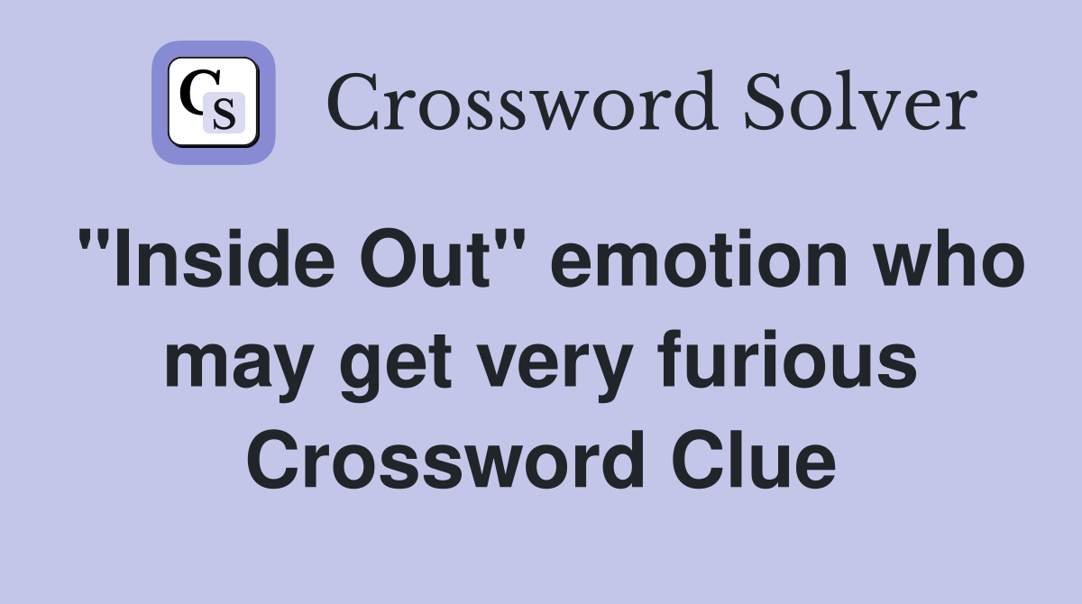 quot Inside Out quot emotion who may get very furious Crossword Clue Answers