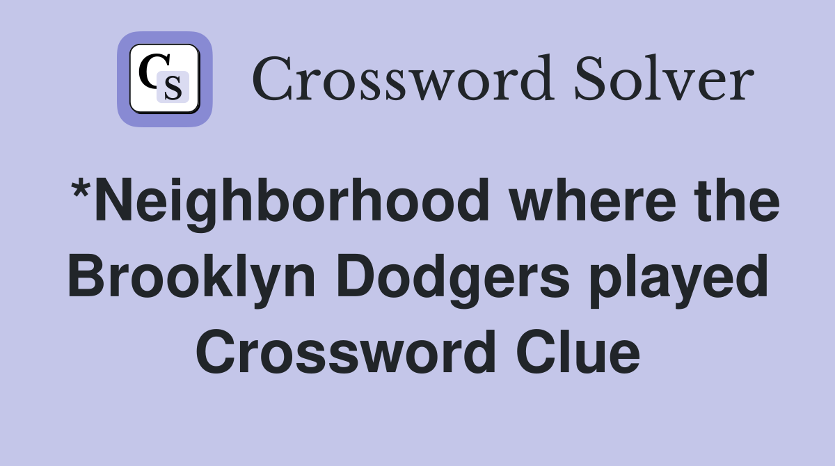 *Neighborhood where the Brooklyn Dodgers played Crossword Clue