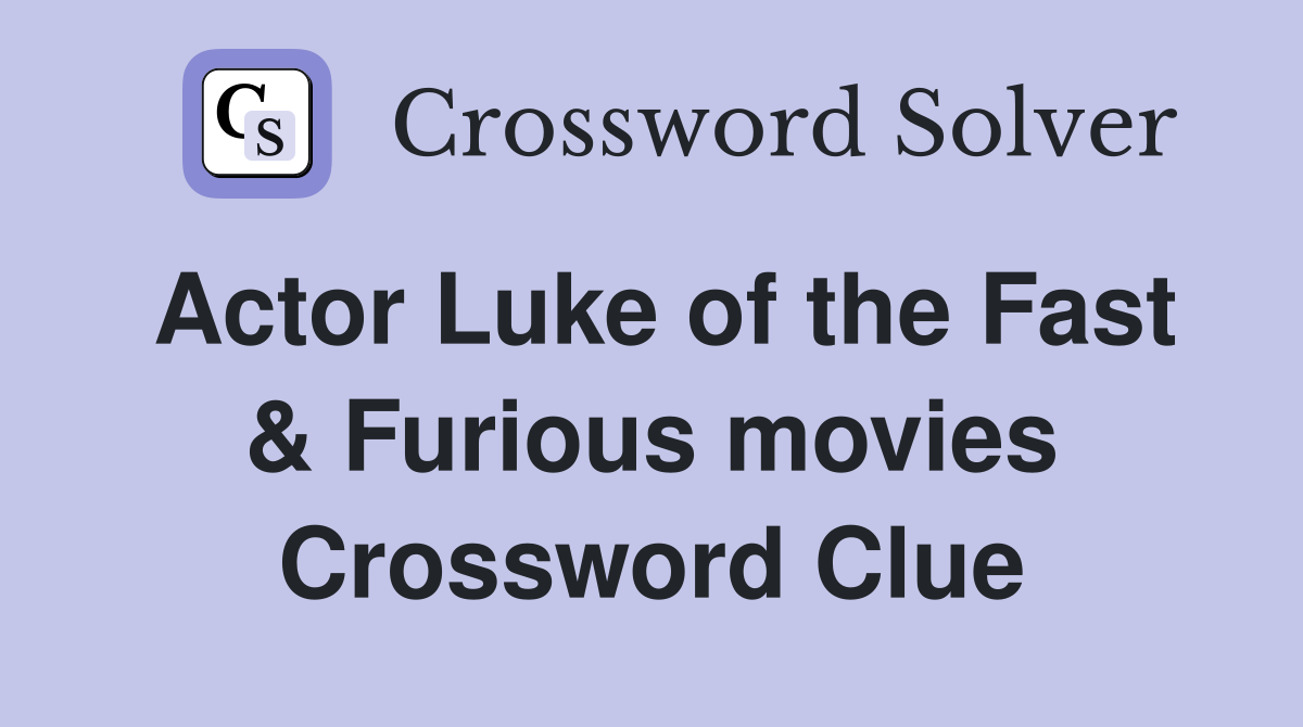 Actor Luke of the Fast Furious movies Crossword Clue Answers