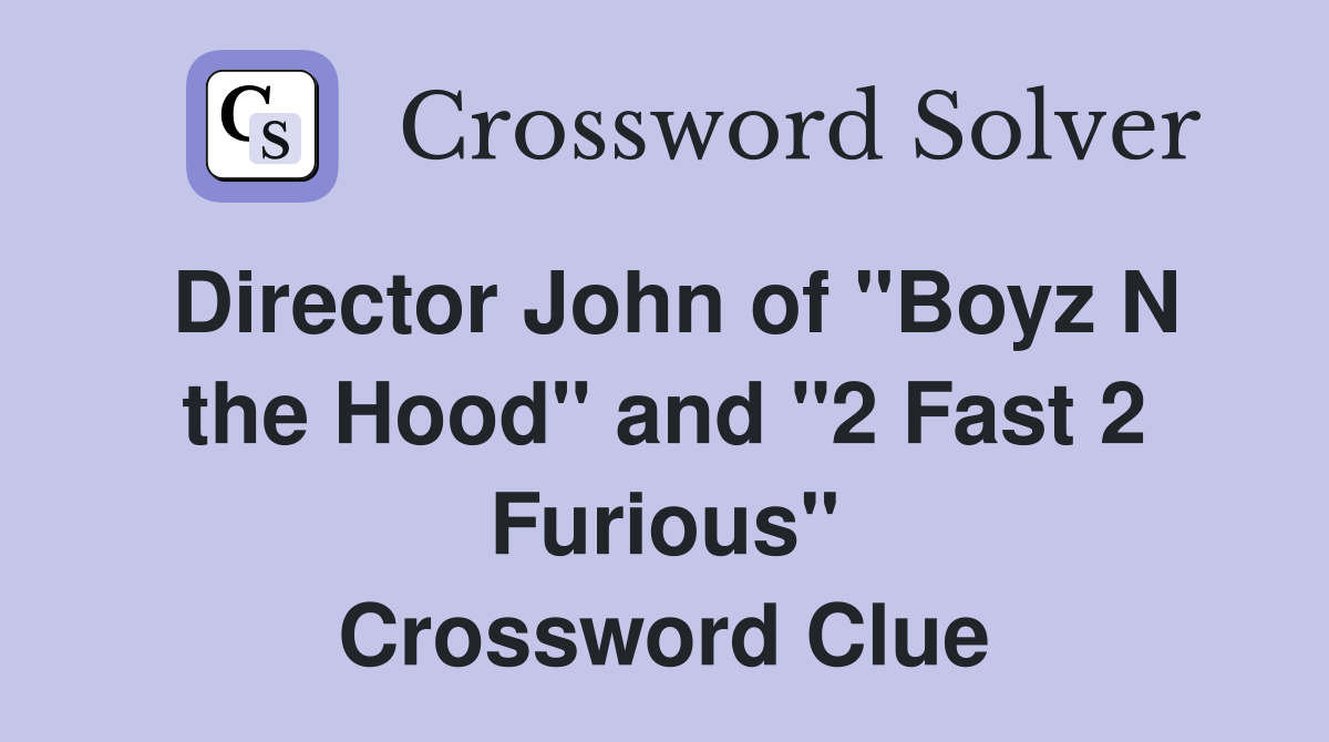 Director John of quot Boyz N the Hood quot and quot 2 Fast 2 Furious quot Crossword