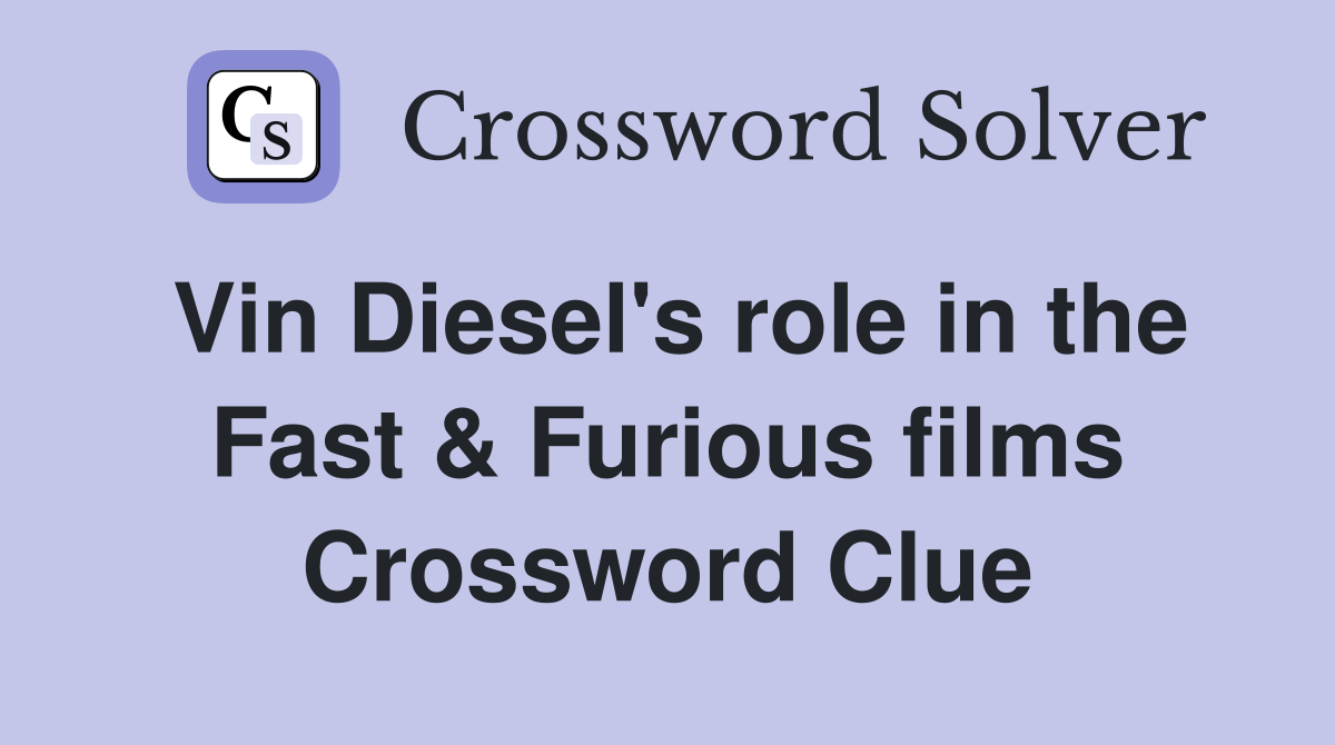 Vin Diesel #39 s role in the Fast Furious films Crossword Clue Answers