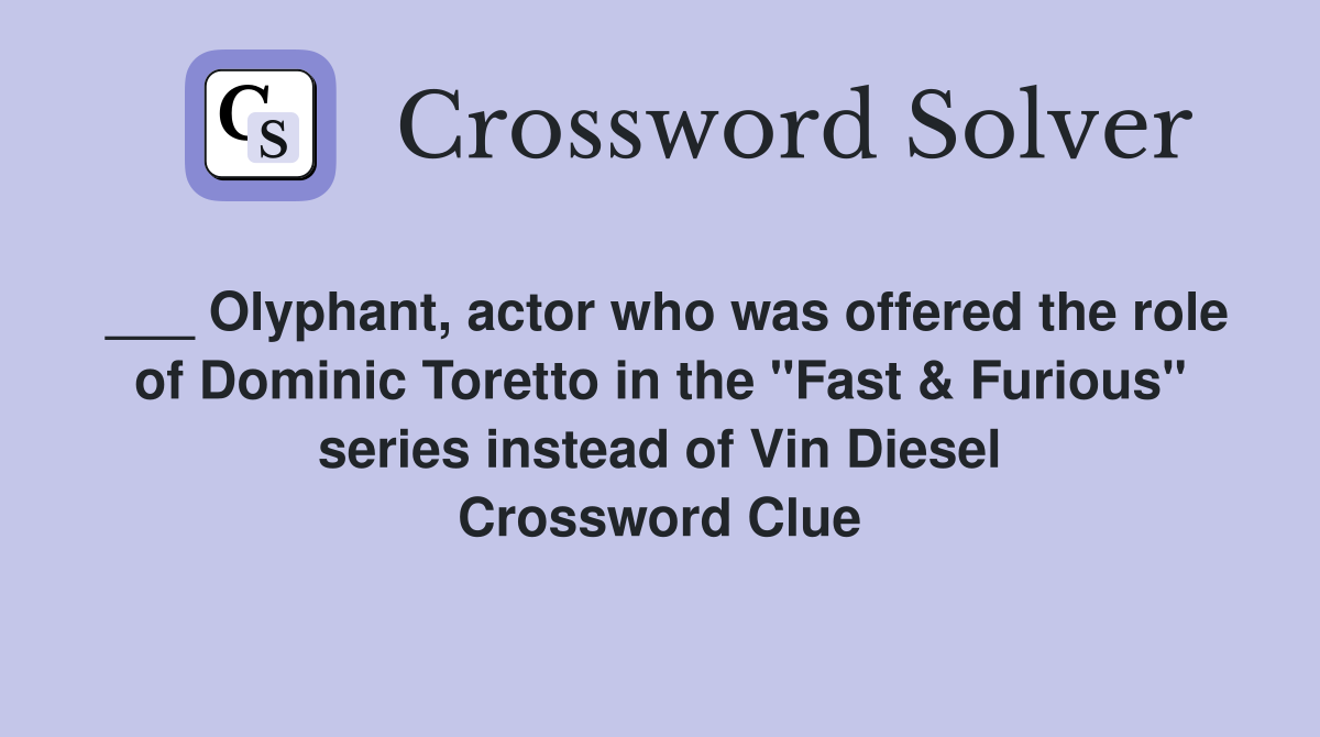 First name of Fast Furious star Mr Diesel (3) Crossword Clue