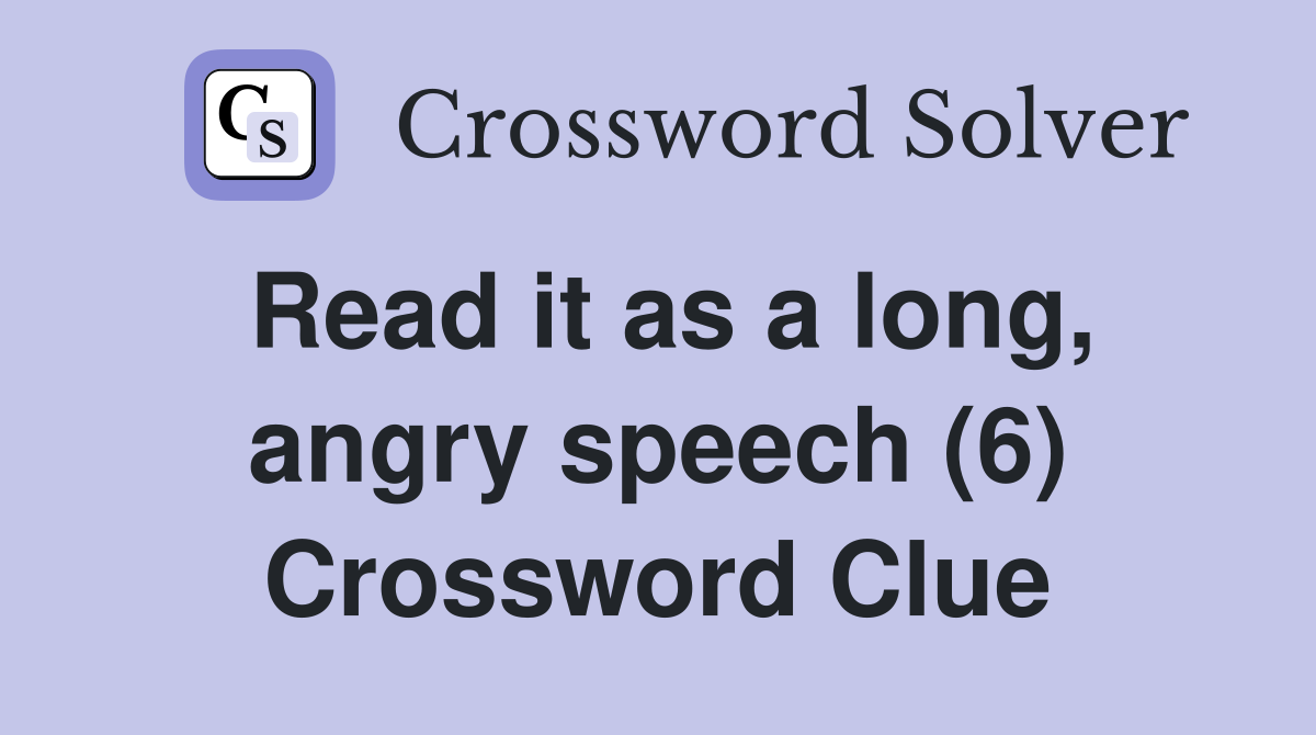 Read it as a long angry speech (6) Crossword Clue Answers