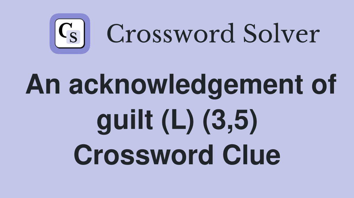 An acknowledgement of guilt (L) (3 5) Crossword Clue Answers
