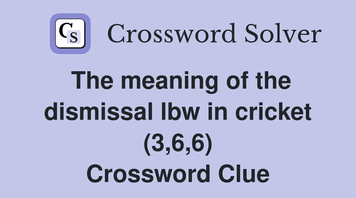 The meaning of the dismissal lbw in cricket (3 6 6) Crossword Clue