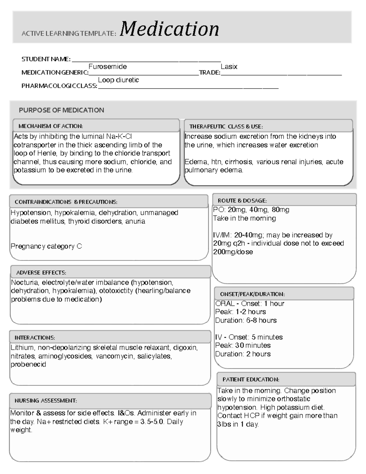 Furosemide Medication Template ACTIVE LEARNING TEMPLATES