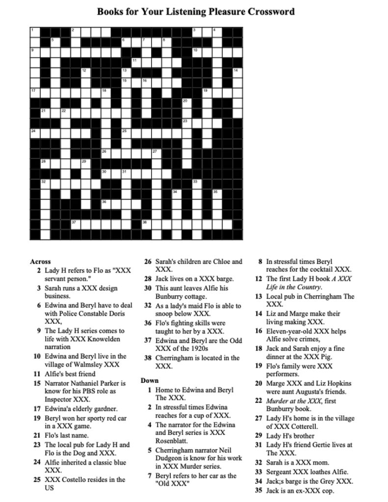Books for Your Listening Pleasure Crossword Millie Mack #39 s Blog
