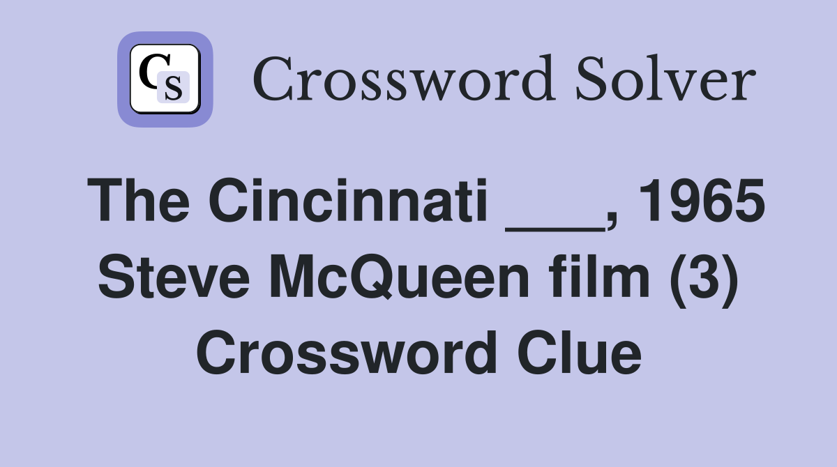 The Cincinnati 1965 Steve McQueen film (3) Crossword Clue