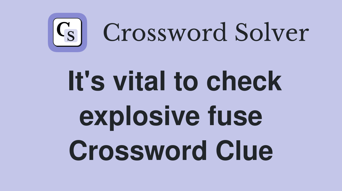 It s vital to check explosive fuse Crossword Clue Answers Crossword