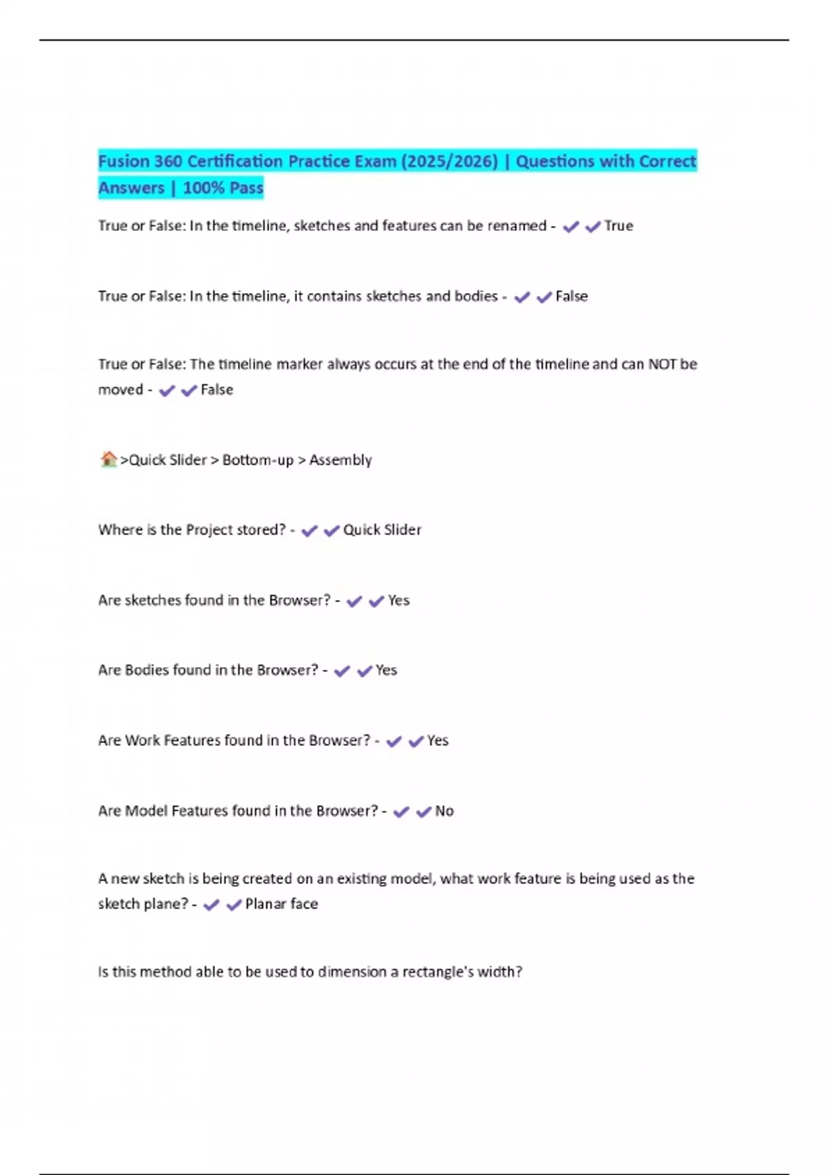 Fusion360 Certification Exam Questions With Correct Answers Fusion