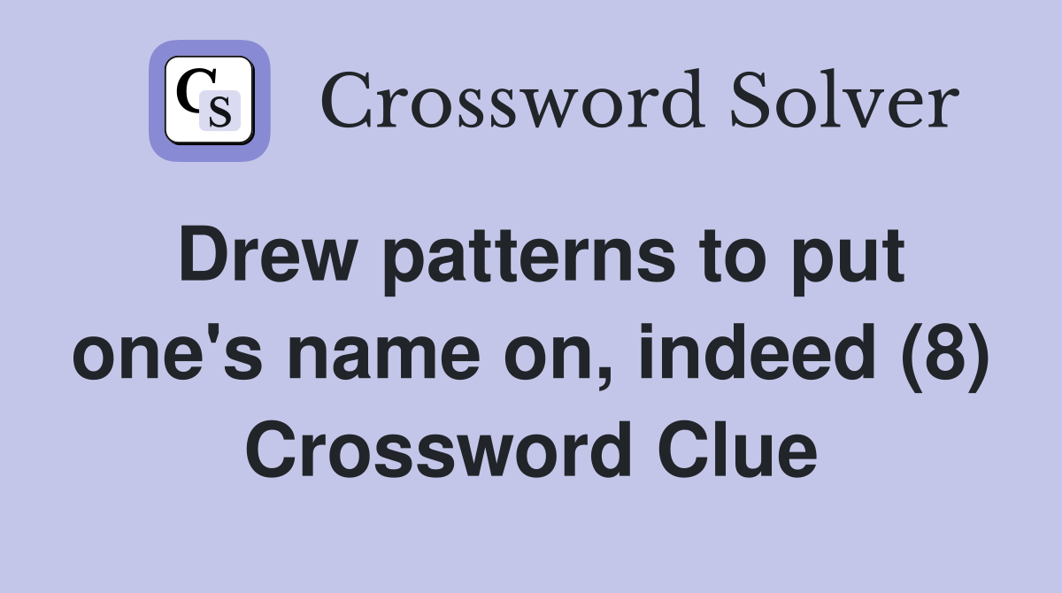 Drew patterns to put one #39 s name on indeed (8) Crossword Clue Answers