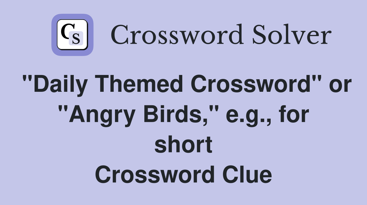 quot Daily Themed Crossword quot or quot Angry Birds quot e g for short Crossword