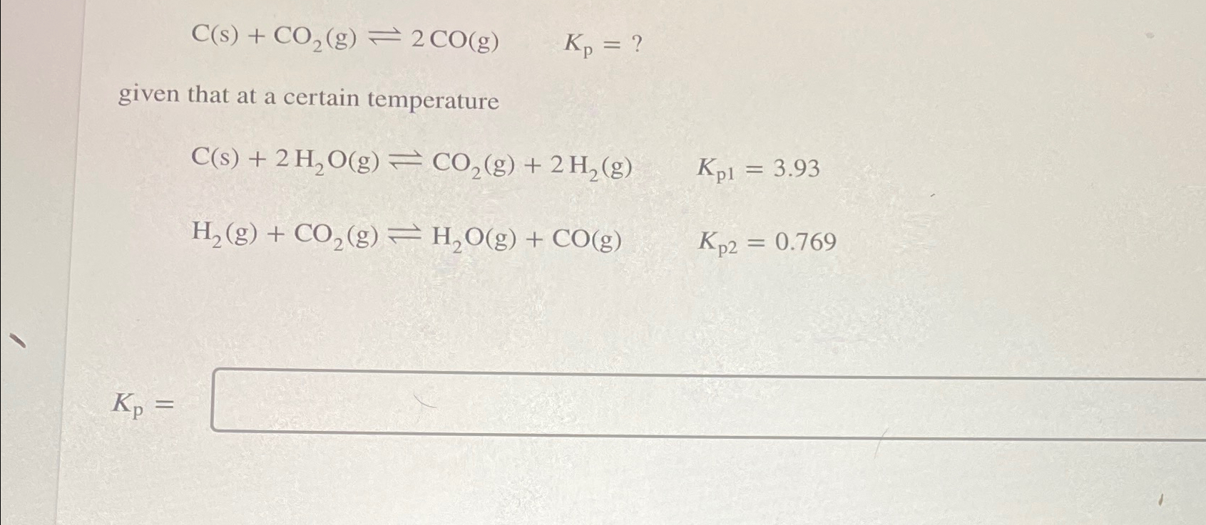 Solved C(s) CO2(g)⇌2CO(g) Kp=given that at a certain Chegg com