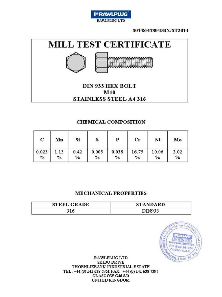 Mill Test Certificate: S0148/4180/DBX/ST2014 PDF