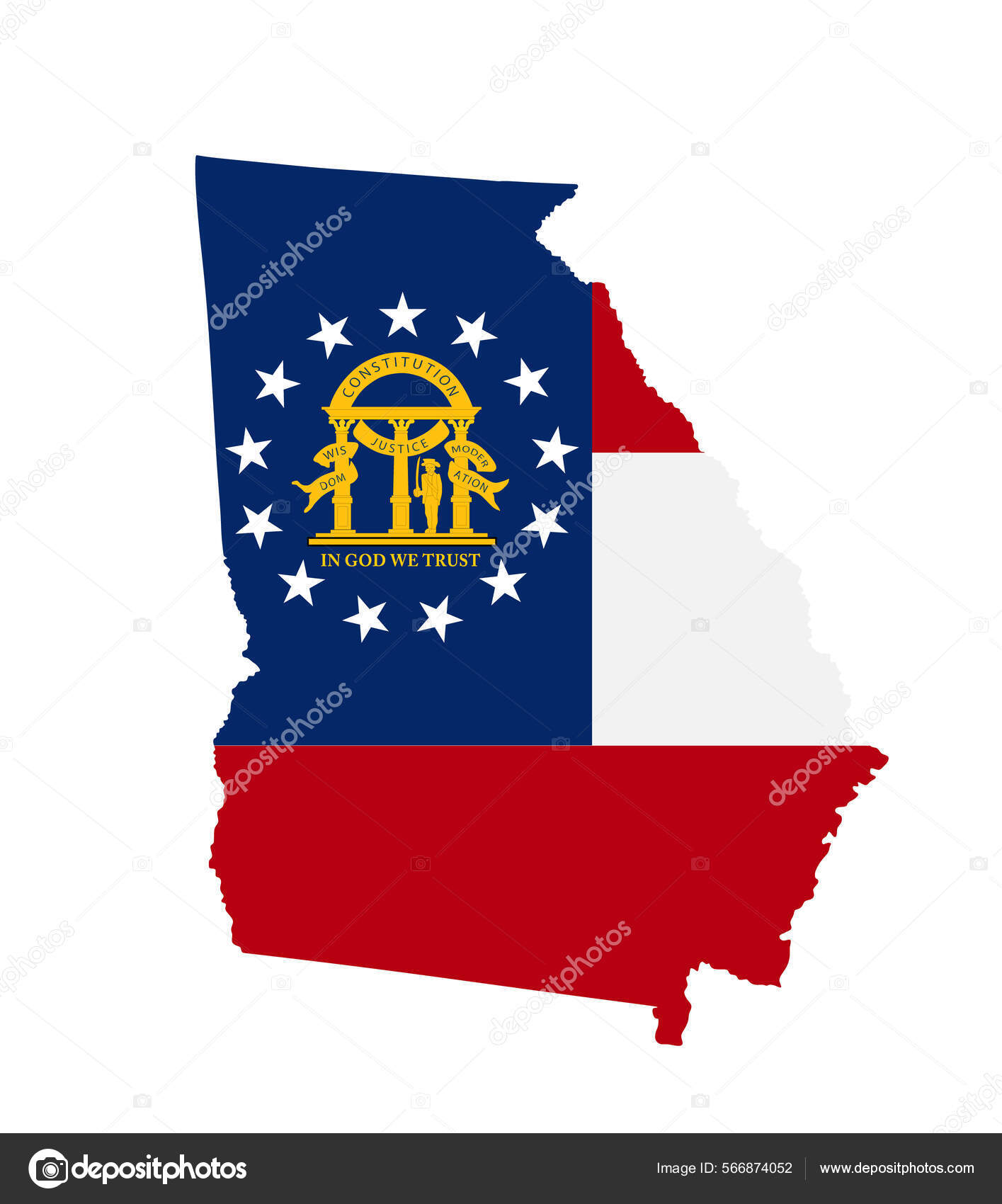 Bandera Mapa Del Estado Georgia Con Ilustración Silueta Vector Escudo