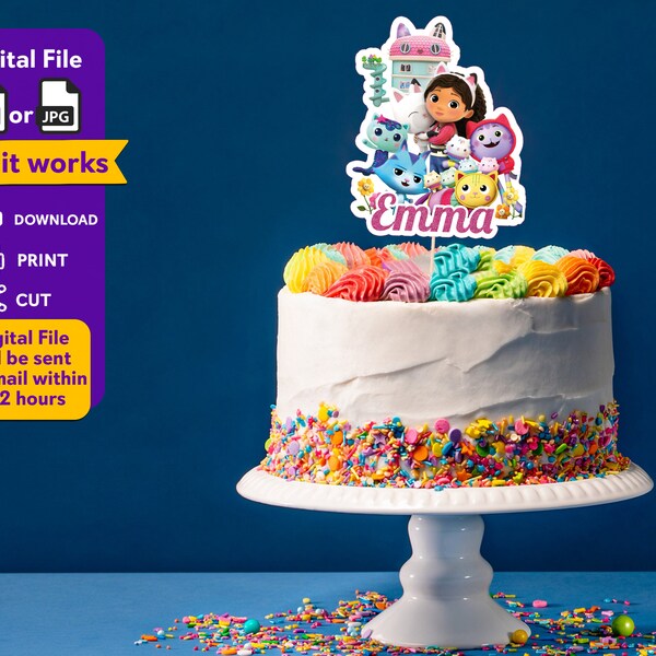 Printable Gabby Dollhouse Cake Topper File With Personalised Name and