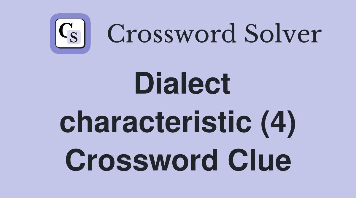 Dialect characteristic (4) Crossword Clue Answers Crossword Solver