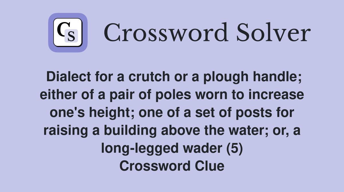 Dialect for a crutch or a plough handle either of a pair of poles worn
