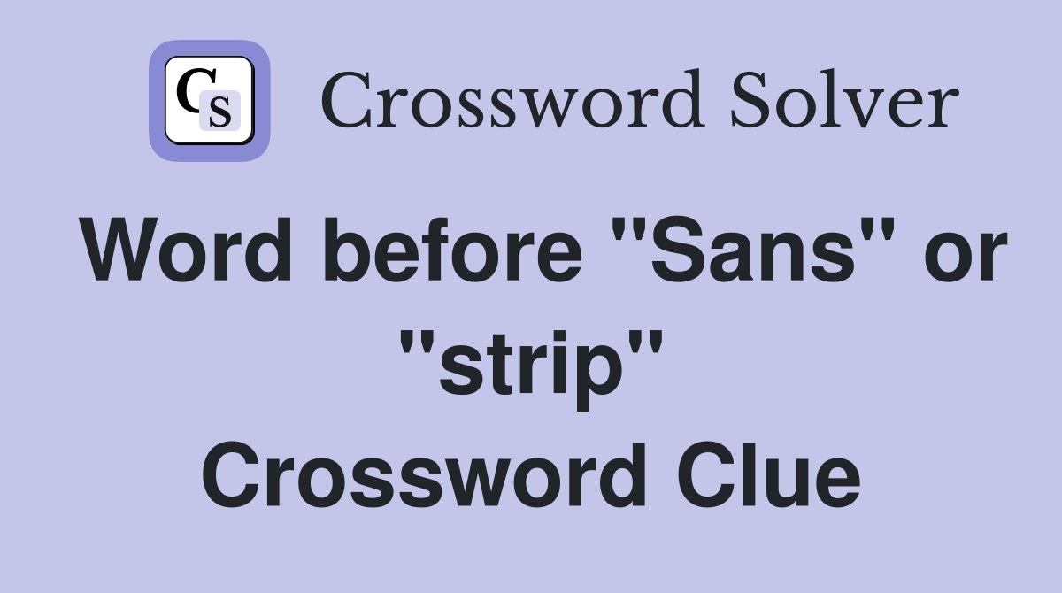 Word before quot Sans quot or quot strip quot Crossword Clue Answers Crossword Solver