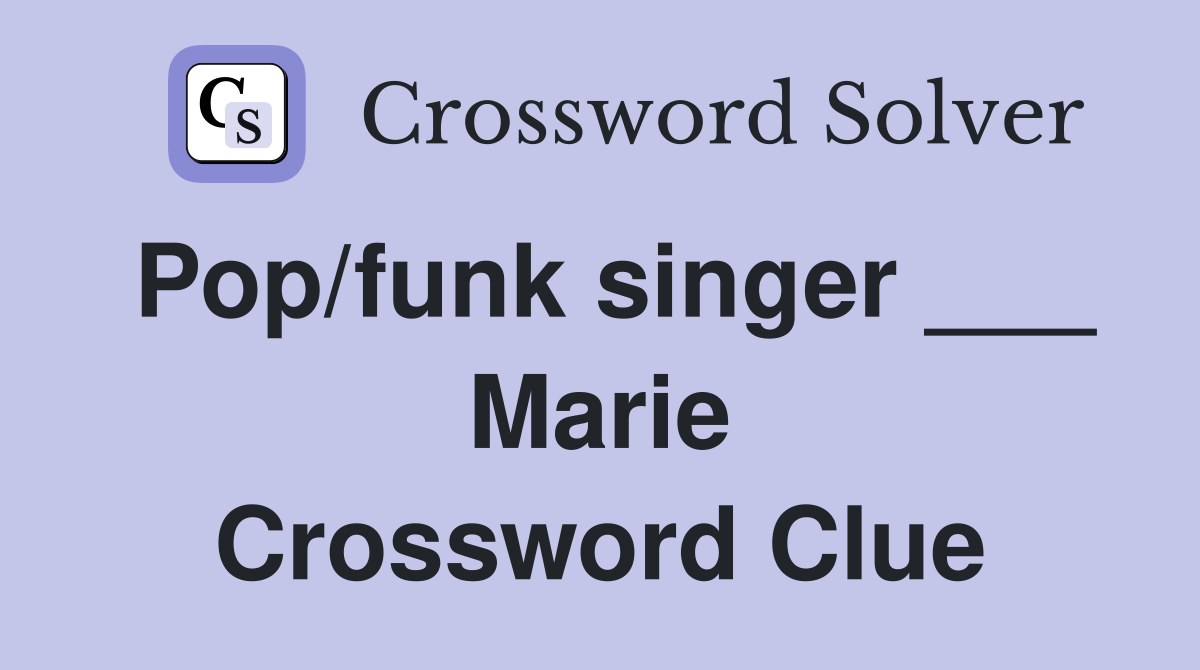 Pop/funk singer Marie Crossword Clue Answers Crossword Solver