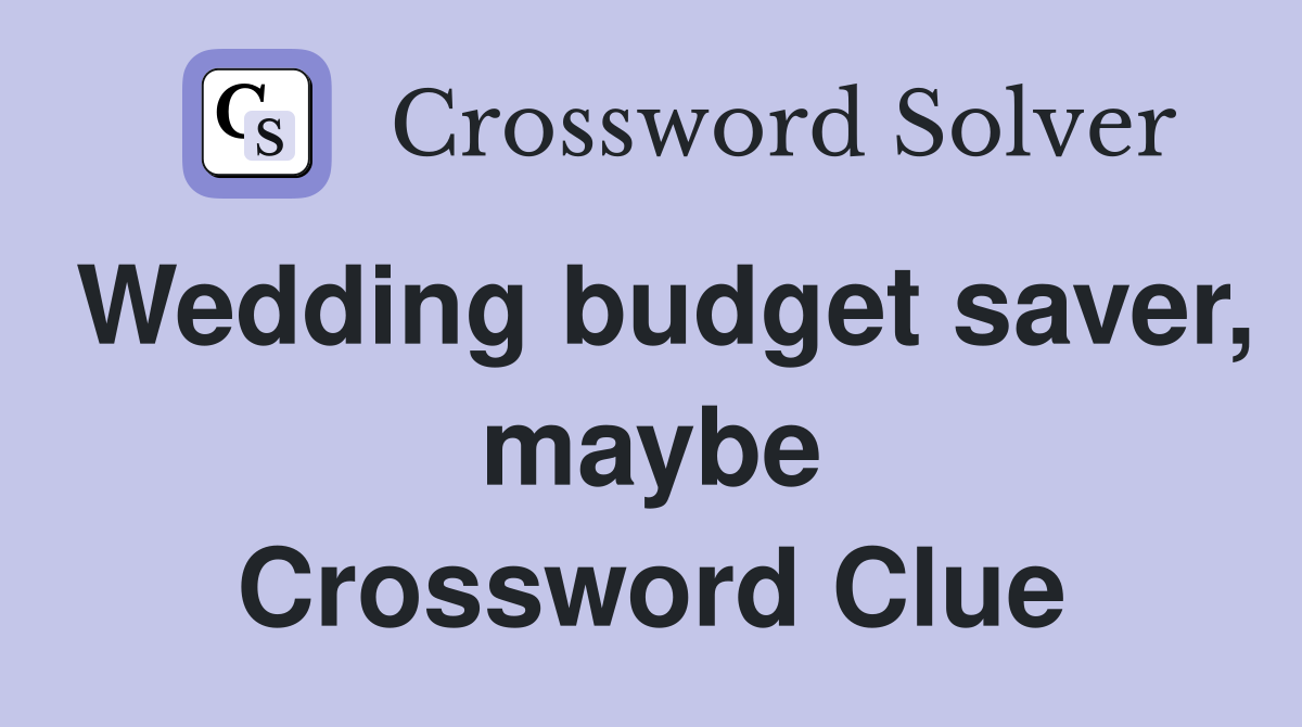 Wedding budget saver maybe Crossword Clue Answers Crossword Solver