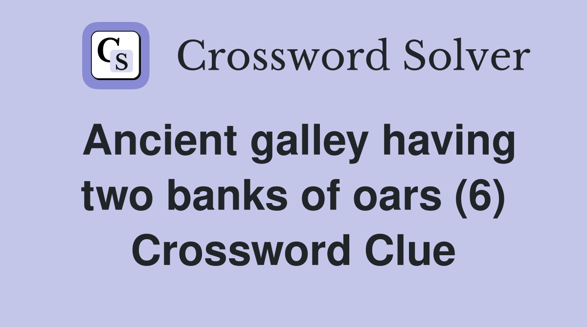 Ancient galley having two banks of oars (6) Crossword Clue Answers