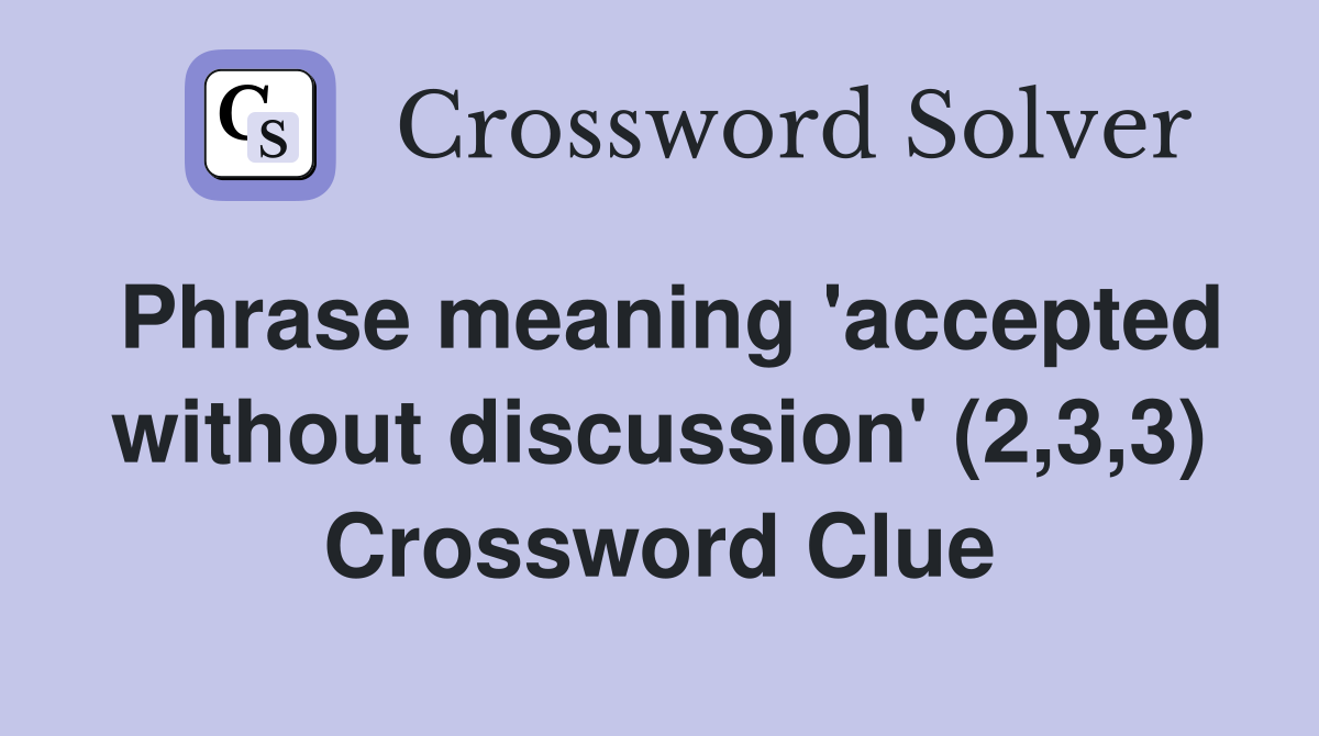 Phrase meaning #39 accepted without discussion #39 (2 3 3) Crossword Clue