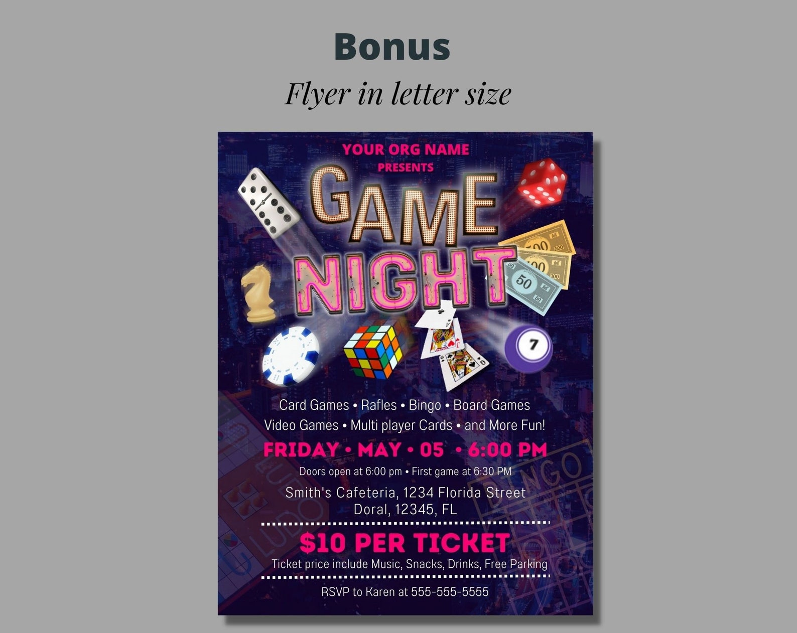GAME NIGHT Template for Flyers Social Media Post Etc Completely