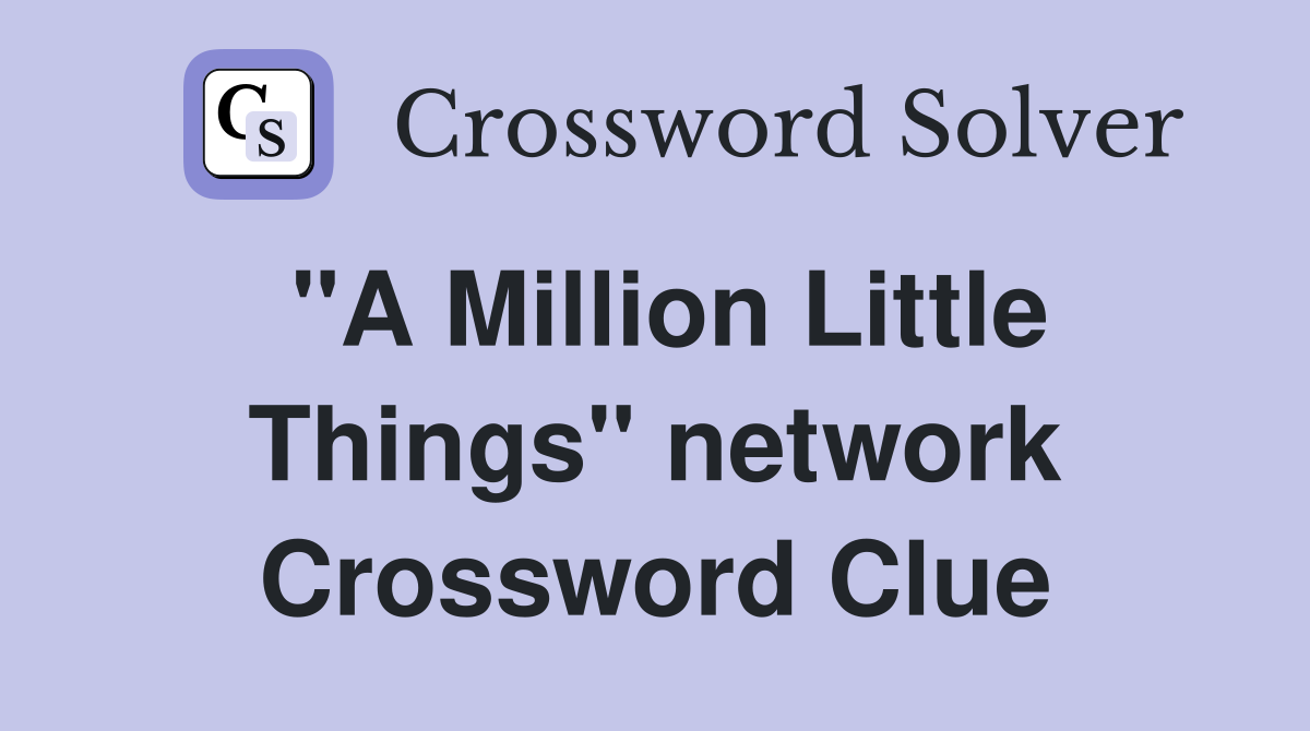 quot A Million Little Things quot network Crossword Clue Answers Crossword