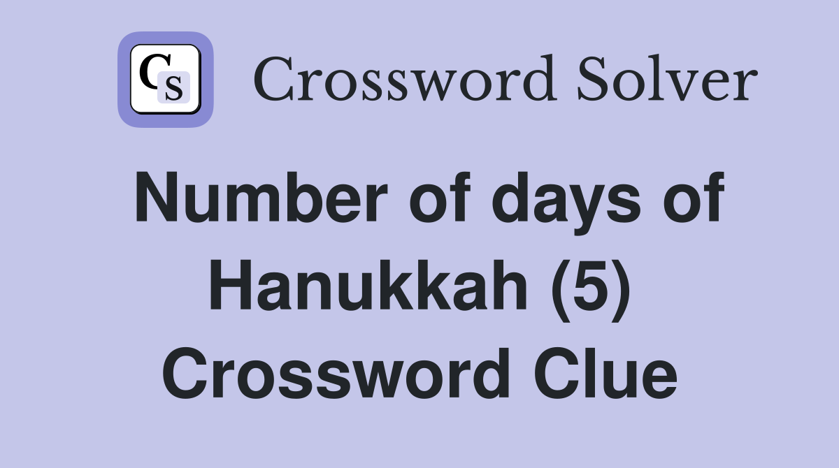 Number of days of Hanukkah (5) Crossword Clue Answers Crossword Solver
