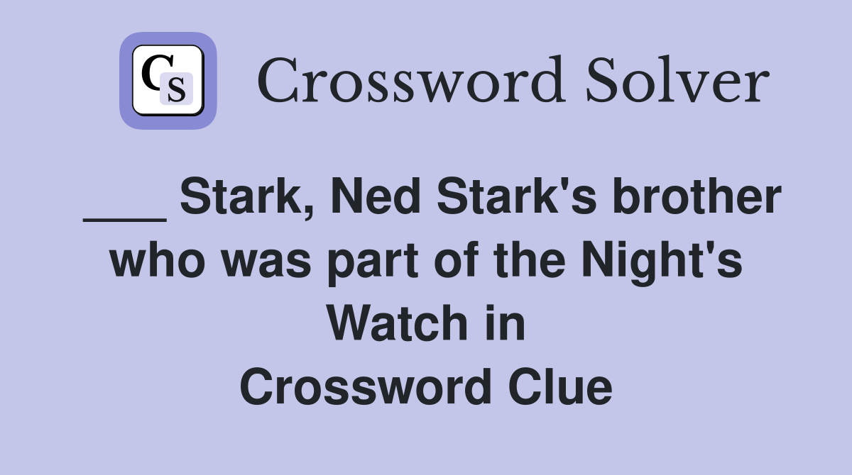 Stark Ned Stark s brother who was part of the Night s Watch in Game