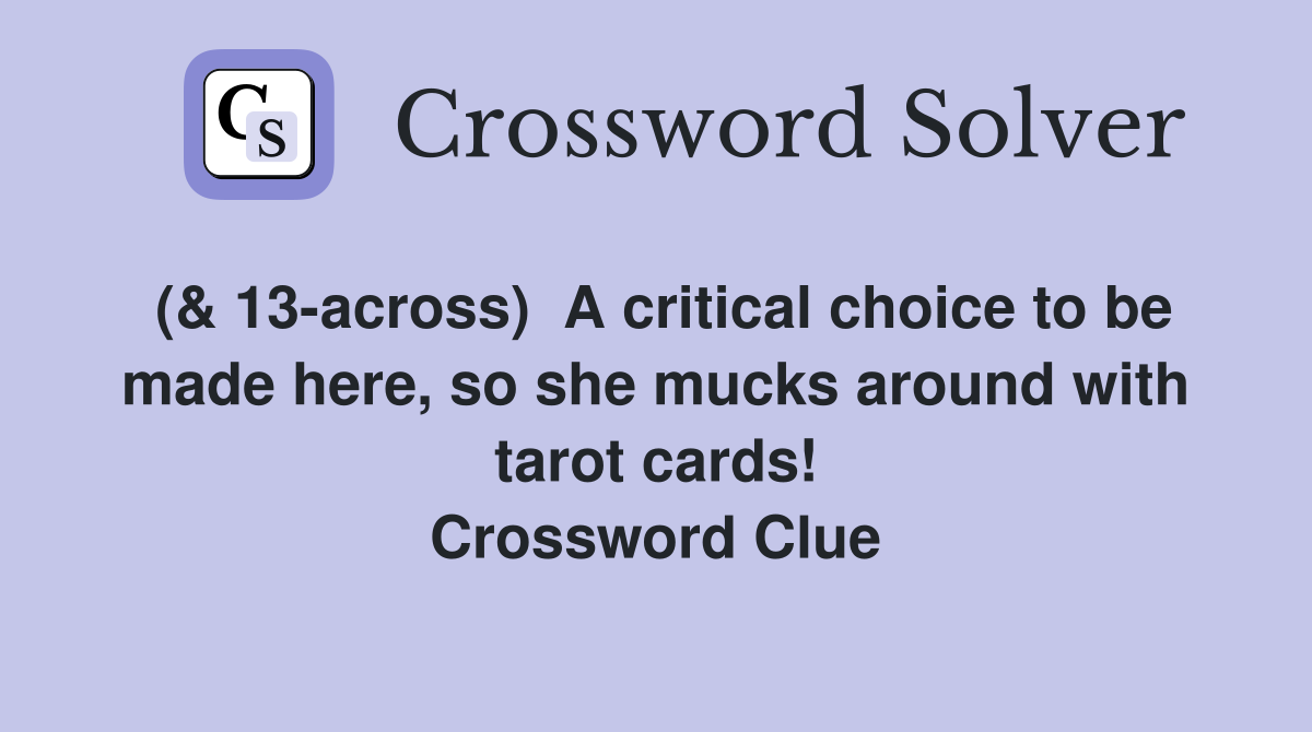 ( 13 across) A critical choice to be made here so she mucks around