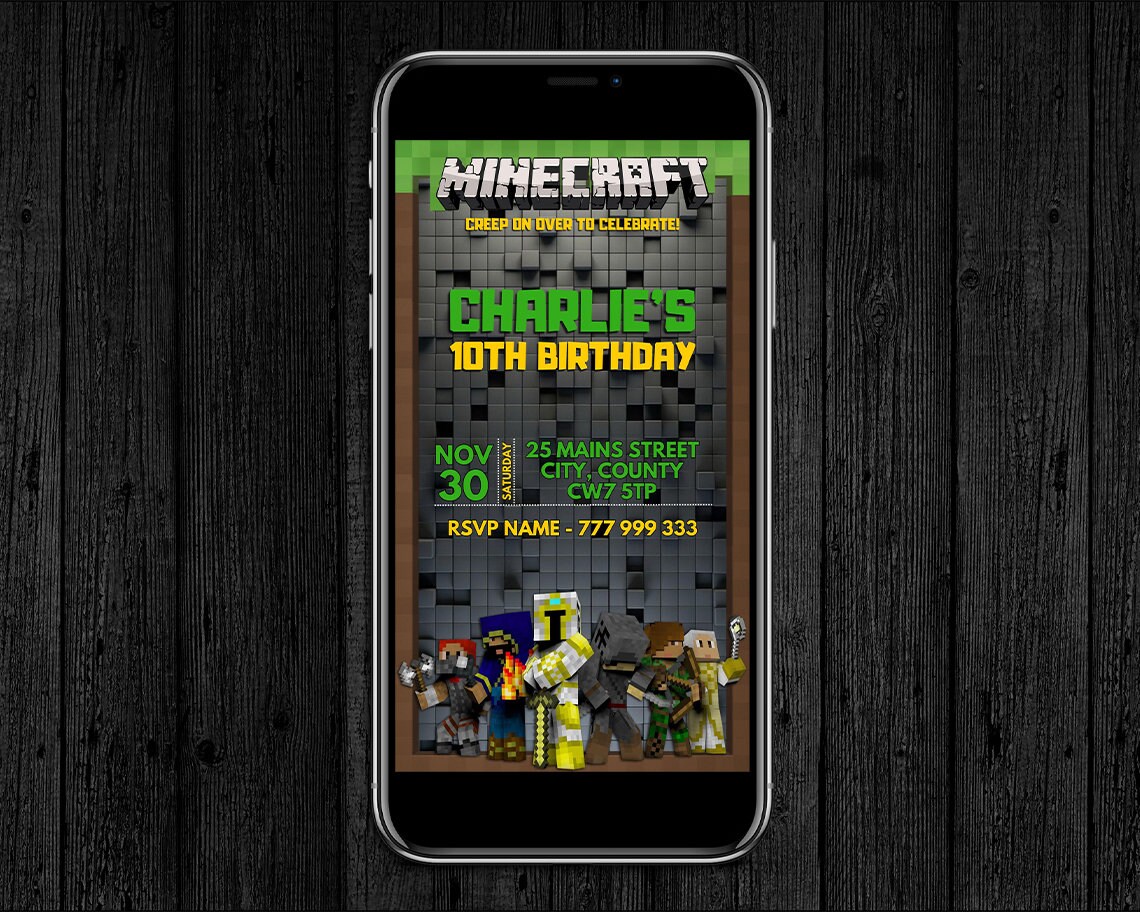 Minecraft Video Game Birthday Invitation / Mine Gamer Personalised