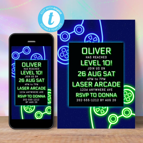 Editable Video Game Party Invitation Level up Birthday Invite Gamer