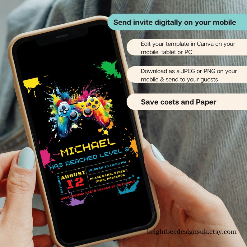 Editable Video Game Birthday Invitation Gaming Party Invite Etsy